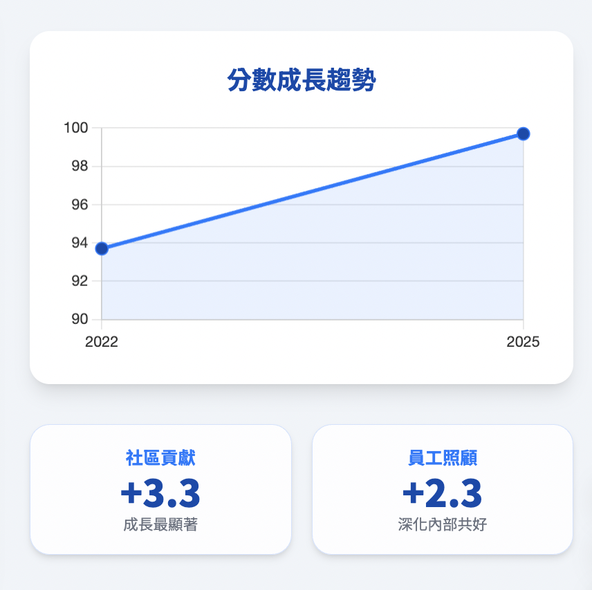 評估面向 | 2025年分數 | 2022年分數 | 提升幅度 |
